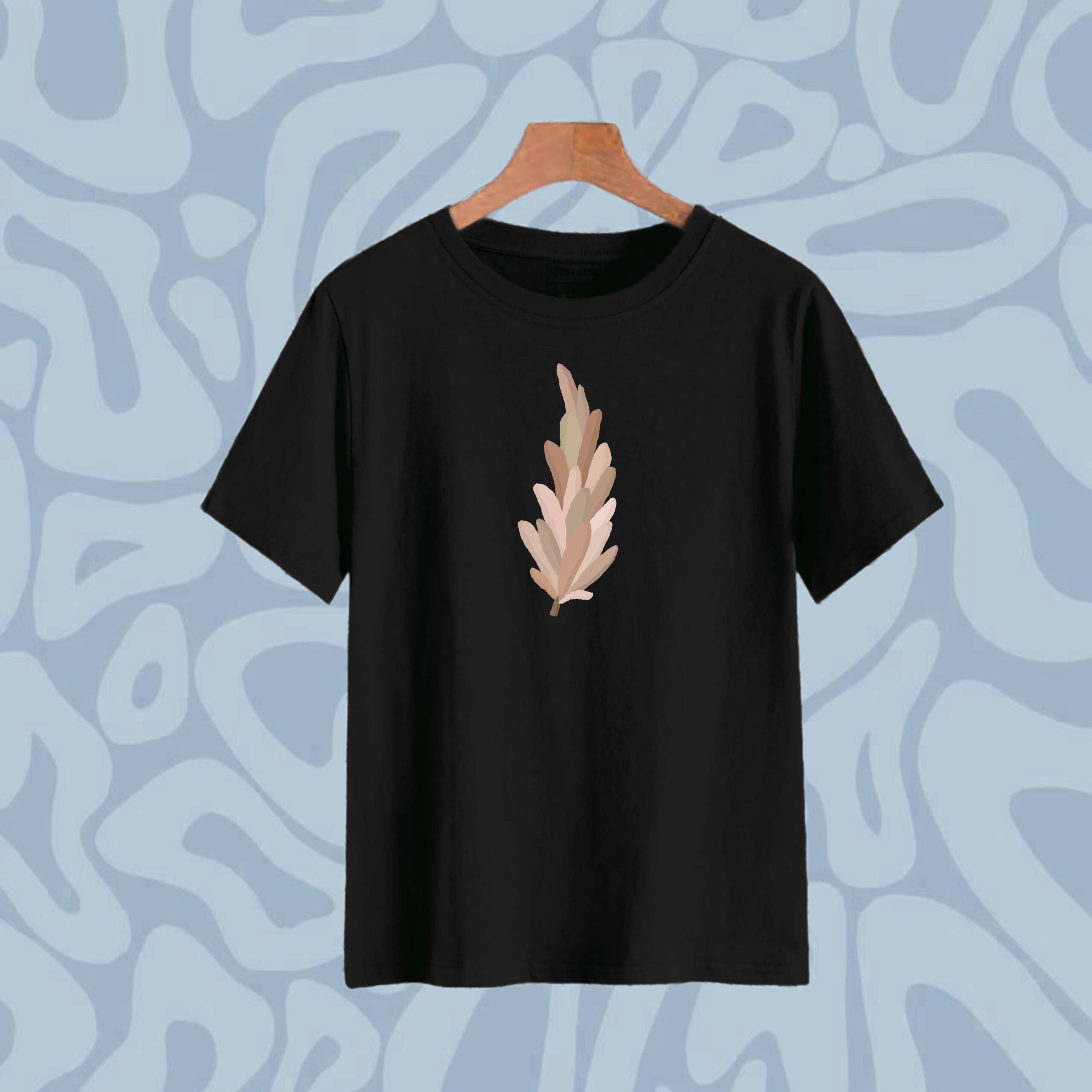 Round Neck T-Shirt Cotton – Black Leaf Half Sleeve